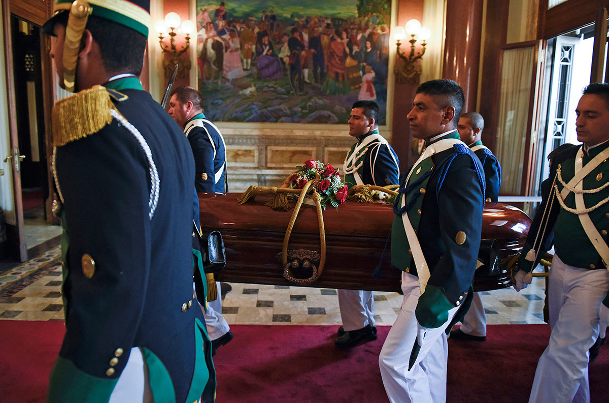 Despiden a Galeano en el Palacio legislativo de Uruguay. Foto: AP / Matilde Campodonico
