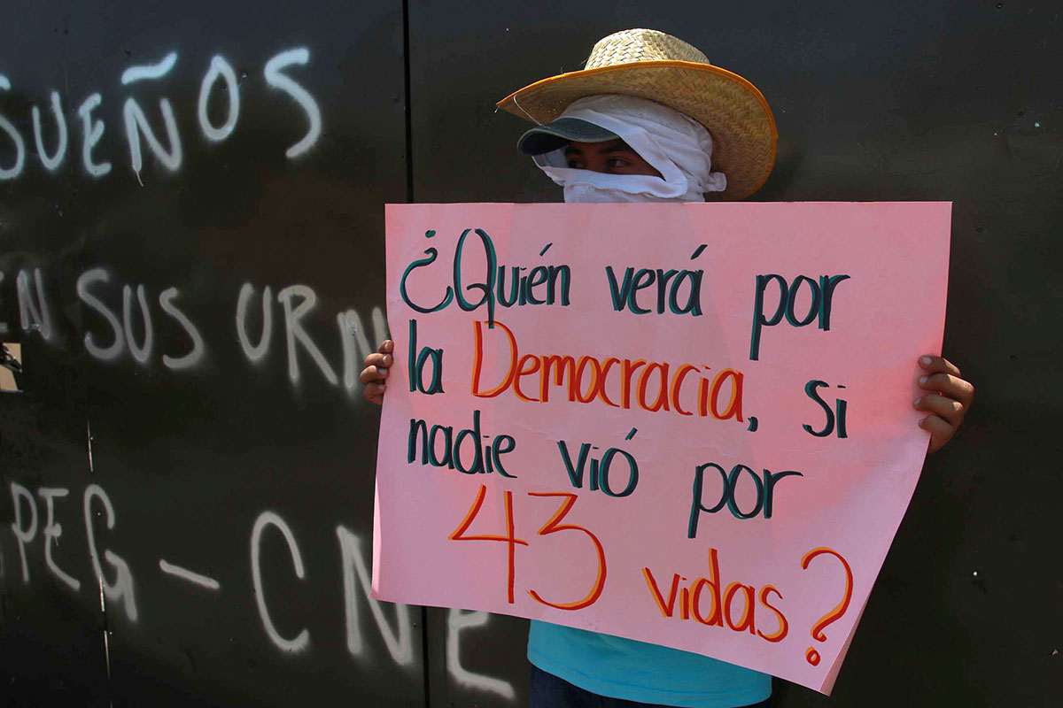 Maestros retiran propaganda electoral en Guerrero. Foto: José Luis de la Cruz