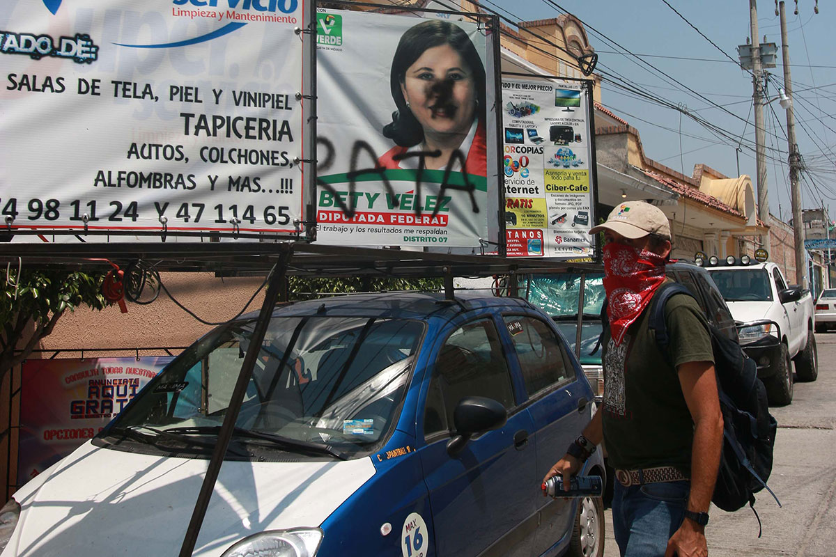 Maestros retiran propaganda electoral en Guerrero. Foto: José Luis de la Cruz