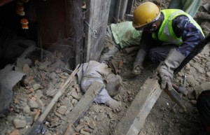 El rescate de cuerpos bajo los escombros de edificios. Foto: AP