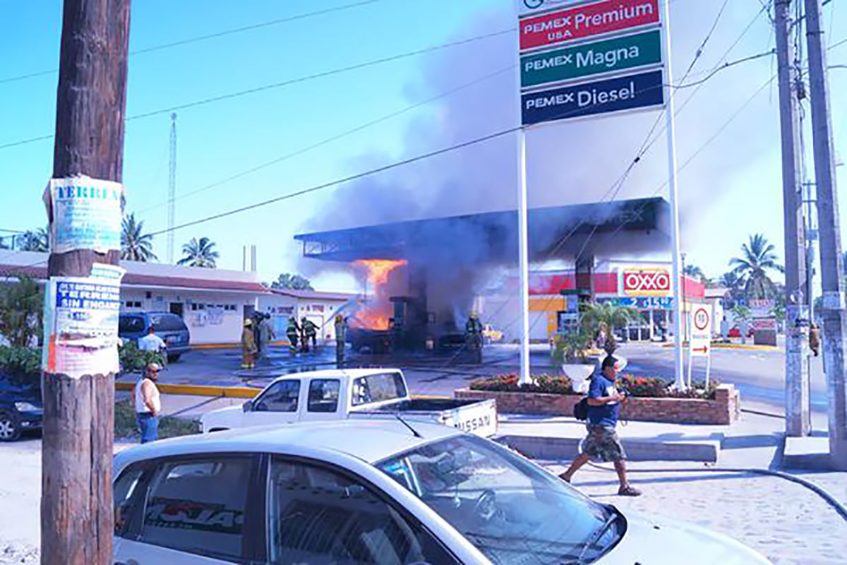 Una de las gasolinerías incendiadas en Jalisco. Foto: Tomada de Twitter