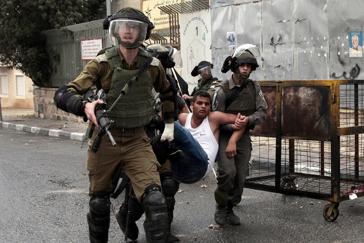Soldados israelíes detienen a un manifestante en Belén. Foto: AP