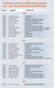 Los peloteros de la LMB sancionados por uso de sustancias prohibidas.