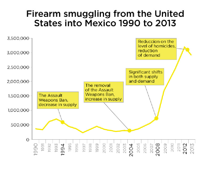 El número de armas traficadas a México desde 1990. Gráfico: Eugenio Weigend’s