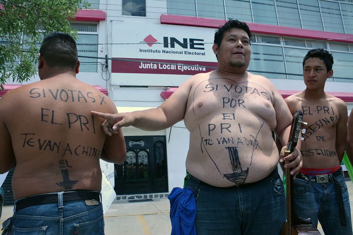 Protestan en oficinas del INE en Zacatecas. Foto: Leonardo Garza