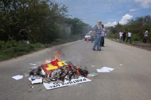 Normalistas queman propaganda electoral en Tixtla. Foto: Germán Canseco