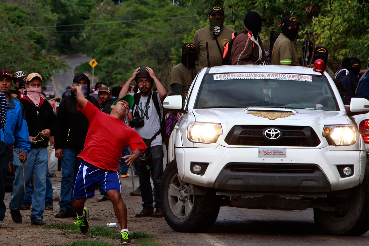 Militantes del PRI y PRD se enfrentan con normalistas en Tixtla. Foto: Germán Canseco