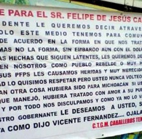 Templarios dan adiós a Calderón en mantas; le reprochan que “no trató con amor al pueblo”