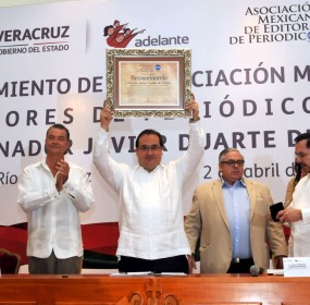 MÉXICO, D.F. (proceso.com.mx).- El 2 de abril el gobernador de Veracruz, Javier Duarte, recibió un reconocimiento de la Asociación Mexicana de Editores de Periódicos (AME) por su papel en “garantizar el ejercicio de la libertad de expresión”. Sin embargo, durante […]