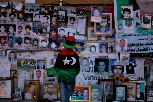 Retratos de gente asesinada por los bombardeos en Libia. Foto: AP