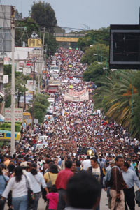 Durante la manifestación de este miércoles, los profesores exigieron también la presentación con vida de su colega Carlos René Román Salazar, desaparecido el pasado 14 de marzo, y que se castigue al ex gobernador Ulises Ruiz y a todos los ex servidores públicos implicados en los sucesos de 2006.