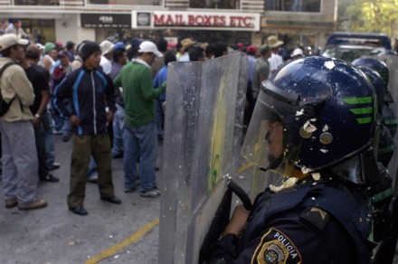 Protagonizan trifulca maestros y policías frente a casa de Elba Esther. Foto: AP