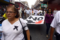 “Alto a la delincuencia”, se leía en uno de los carteles que portaban los jóvenes estudiantes, quienes exigieron la presencia del titular de la Procuraduría General de Justicia del Estado (PGJE), Reynaldo Escobar Pérez, quien nunca llegó a atender el reclamo de los quejosos.
