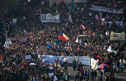 Estudiantes se enfrentan con policías en Chile. Protestan en contra de la privatización educativa. Foto: AP |
