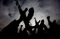 En la ciudad, todo parecía tranquilo, pero cerca de las nueve de la noche, la radio rebelde lanzó un llamado urgente para que los shabab se dirigieran rápidamente a Gimeenis, un suburbio. Los autos empezaron a desplazarse a gran velocidad y las pocas tiendas y cafés abiertos cerraron apresuradamente. Las calles quedaron en completo silencio, con excepción del ladrido de los perros y algunos tiros aislados.