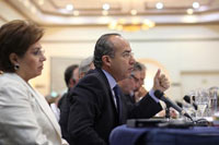 Calderón destacó la necesidad de fortalecer las instituciones en los países de la región, además de replantear la cooperación internacional con Estados Unidos, principalmente en lo que corresponde al tráfico de armas y el consumo de drogas.