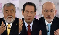 TOLUCA, Edomex (apro).- Con multitud de propuestas y escaso debate, salvo en temas como eliminar la corrupción del “pulpo del transporte” y la necesidad de crear más universidades estatales, así como poner en marcha la preparatoria obligatoria, los tres candidatos al gobierno mexiquense participaron en el segundo y último encuentro televisivo, organizado por el Instituto Electoral del Estado de México (IEEM).