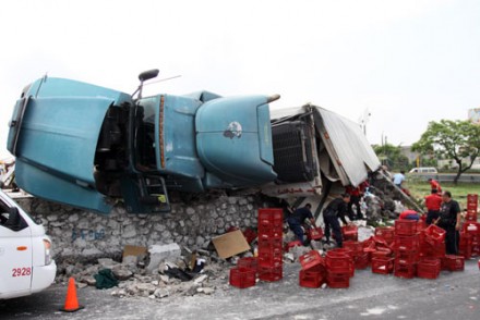 Vuelca tráiler con productos lácteos en Cuernavaca. Foto: Margarito Pérez