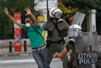 La policía griega detiene a un manifestante. Foto: AP |