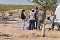 En el ejido Los Arenales de Torreón, a las 18:10, agentes de la Unidad de Homicidios, acompañados del Ministerio Público de Delitos contra la Vida y Salud Personal, encontraron frente a la escuela primaria Ignacio Zaragoza los cadáveres de tres hombres.