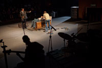 La musicalización de clásicos del rock ocurre en vivo con el guitarrista Tomás Barreiro, Poncho Figueroa (exbajista de Santa Sabina) y la batería de Ernesto Juárez, trío encarnación de la histórica banda sesentera checoslovaca PPU.