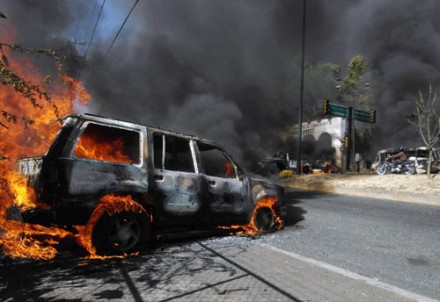 Sicarios incendian vehículos en Michoacán. Foto: Francisco Castellanos