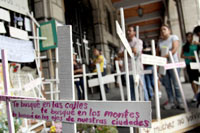 Con una corona de flores, un ataúd y pancartas en las que escribieron que los militares están matando a los jóvenes morelenses, los manifestantes partieron de las instalaciones de la Procuraduría General de Justicia del estado (PGJE) hacia la 24 Zona Militar, para exigir justicia por el homicidio del joven de 26 años de edad.