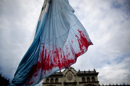 Una bandera guatemalteca en protesta por el asesinato de Facundo Cabral.