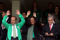 Tras culminar el partido con el triunfo de los jóvenes mexicanos, el Ejecutivo tomó su lugar para felicitar a los jugadores y entregarles su medalla. Casi sin tomarlo en cuenta, los llamados nuevos “niños héroes” lo saludaron, y a uno de ellos casi lo jaló para darle un abrazo. Era evidente que no quería dejar pasar la oportunidad de capitalizar el triunfo de México y mostrarse también como un triunfador, aunque fuera sólo como invitado.