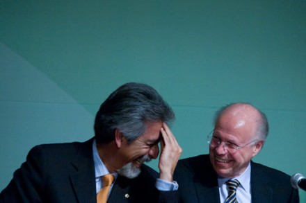 Villa y Narro. Anuncian lineamientos de la política espacial de México. Foto: Octavio Gómez