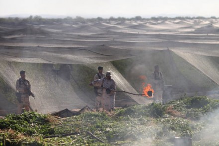 Plantío de 120 hectáreas de mariguana, presuntamente propiedad de El Chapo. Foto: AP / Alexandre Meneghini |