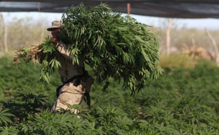 Plantío de 120 hectáreas de mariguana, presuntamente propiedad de El Chapo. Foto: AP / Alexandre Meneghini