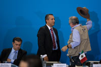 En la mesa estaban también la procuradora Marisela Morales y el secretario de Educación, Alonso Lujambio.