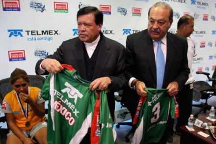 Norberto Rivera y Carlos Slim reciben a ganadores de torneo de futbol callejero.
