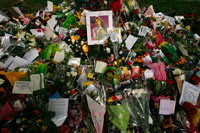 Vecinos y admiradores de todo el mundo han colocado ramos de flores, velas y mensajes escritos a mano afuera del departamento de Winehouse en Londres donde personal médico encontró a la cantante ya muerta el sábado. Uno de los mensajes decía “R.I.P. Nunca olvidada”, mientras que otro afirmaba: “Está bien, amor. Vete ahora”.