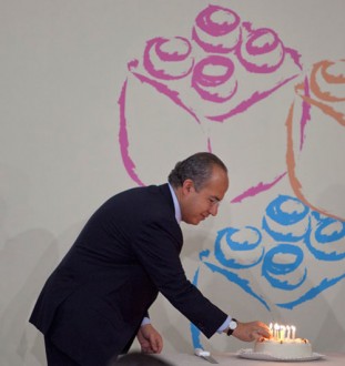 Utiliza Calderón acto público para festejar a su esposa. Foto: Miguel Dimayuga