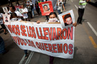 Durante la marcha, las familias exhibieron pancartas con imágenes de los desaparecidos y exigencias de justicia, entre otras, la utilizada por las familias de desaparecidos durante la llamada “guerra sucia”: “Vivos se los llevaron, vivos los queremos”.