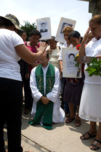 Rodeado de madres, hermanos e hijos que en sus manos portaban los retratos de sus seres queridos, de los que desconocen su paradero desde hace 10, 15 ó 20 años, Solalinde volvió a pedir perdón por políticos que no supieron estar “a la altura de su responsabilidad histórica, no supieron responder a formar personas, en fin, por todo esto, hermanos Zetas, hermanos que han participado en la delincuencia organizada y que han contribuido en el dolor de estas familias que están aquí, por ellos les pido perdón de todo corazón”.