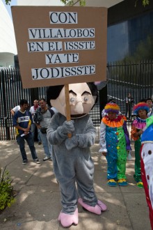 Sindicalistas exigen la renuncia del director del ISSSTE, Jesús Villalobos. Foto: Miguel Dimayuga