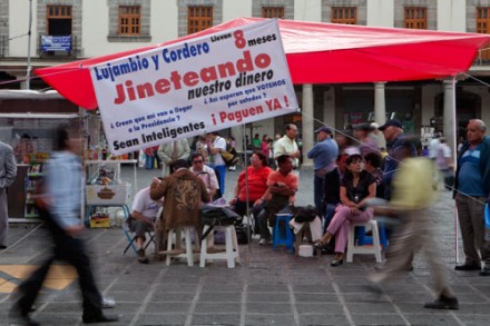 Protestan extrabajadores de la SEP. Exigen pago de pensiones. Foto: Miguel Dimayuga