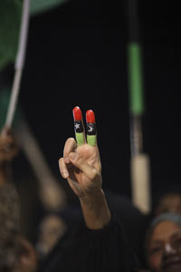 Las mujeres acudieron vestidas de negro y ululaban, mientras los combatientes rebeldes disparaban al aire. “¡Bien alta la cabeza, Libia es libre!”, coreaban los libios presentes en la plaza.