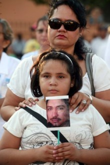 Familiares de un “daño colateral” a la llegada de la Caravana por la Paz a Iguala. Foto: Germán Canseco