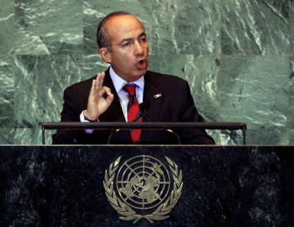 La expresión fue formulada por Calderón durante su intervención en la 66 Asamblea General de la Organización de Naciones Unidas (ONU), foro en que hizo un llamado a los países miembros a combatir el tráfico de armas.
