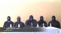 Uno de ellos pronuncia un mensaje, con fecha 24 de septiembre, en el que comunica que no se dedicarán a extorsionar ni secuestrar a la población, y tampoco tomarán como blanco a las Fuerzas Armadas, ya que su única meta es someter a Los Zetas.