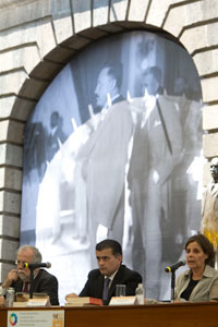 El titular de la SEP, Alonso Lujambio y la directora del Centro de Investigación y Estudios Avanzados del IPN, Susana Quintanilla durante la presentación del libro.. Foto: Octavio Gómez |