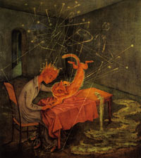 MÉXICO, D.F. (Proceso).- El pasado 31 de agosto se presentó en el Museo de Arte Moderno la edición de un grabado cuya plancha metálica de 15 por 18 cm., había trabajado en 1959 Remedios Varo para obsequiársela a su amigo muy estimado: el galerista Juan Martín. Se trataba de El guajolote navideño, del que la artista alcanzó a realizar una sola prueba. Antes, en el mismo 1959, Remedios había trabajado la misma imagen en un tamaño de 28 por 25 cm., en técnica de esgrafiado sobre papel previamente entintado.