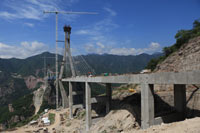 De la parte correspondiente a Durango pende una estructura horizontal de dos carriles que en su punto medio se encontrará con otra igual proveniente de Sinaloa. En ambos lados del puente, sobre lo que será la carretera, hay comedores, albergues y letrinas.