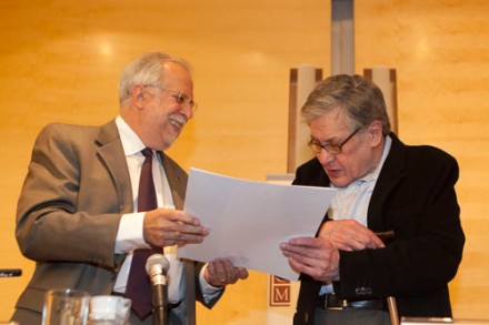 MÉXICO, D.F. (apro).- Casi dos horas duró el encuentro entre José Emilio Pacheco y el público diverso (aunque ligado todo a instituciones académicas) al que hubo de reubicar en el vestíbulo del auditorio “Alfonso Reyes” de El Colegio de México (Colmex) para que participara en la entrega del Premio Alfonso Reyes en pantallas que dio el historiador Javier Garciadiego al narrador y poeta.