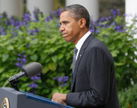 “Hoy podemos decir de manera definitiva que el régimen de Gadafi ha llegado a su fin”, dijo Obama en el Jardín de las Rosas de la Casa Blanca.