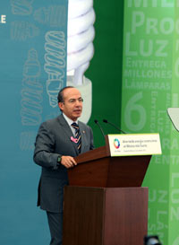 Durante la entrega de la lámpara ahorradora de luz número seis millones, en el Deportivo 18 de Marzo de la delegación Gustavo A. Madero, el Ejecutivo mencionó que con ese programa y el denominado “Cambia a tu viejo por uno nuevo”, el gobierno contribuye a contrarrestar los efectos del cambio climático, del mismo modo que lo hace con la generación de energía renovable.